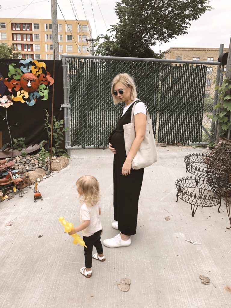 Today’s outfit is a pretty simple one, but I’m happy with how it came together. I haven’t paired this jumpsuit with a t-shirt yet, but I love how it makes for more casual summer style (especially with the addition of the sneakers). I was super comfy all day, but I felt like a “cool” mom (felt being the operative word of course).