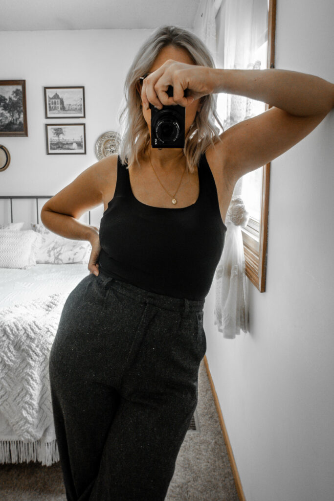 and the Invisible Tank Top, which is what I’m wearing in the photo above. It’s the perfect layering tank top. It’s super smoothing and thin so you can literally wear it under anything without even an ounce of bulk or bunching. They come in white, deep taupe, and nude as well and sizes ranging from xs-xl.
