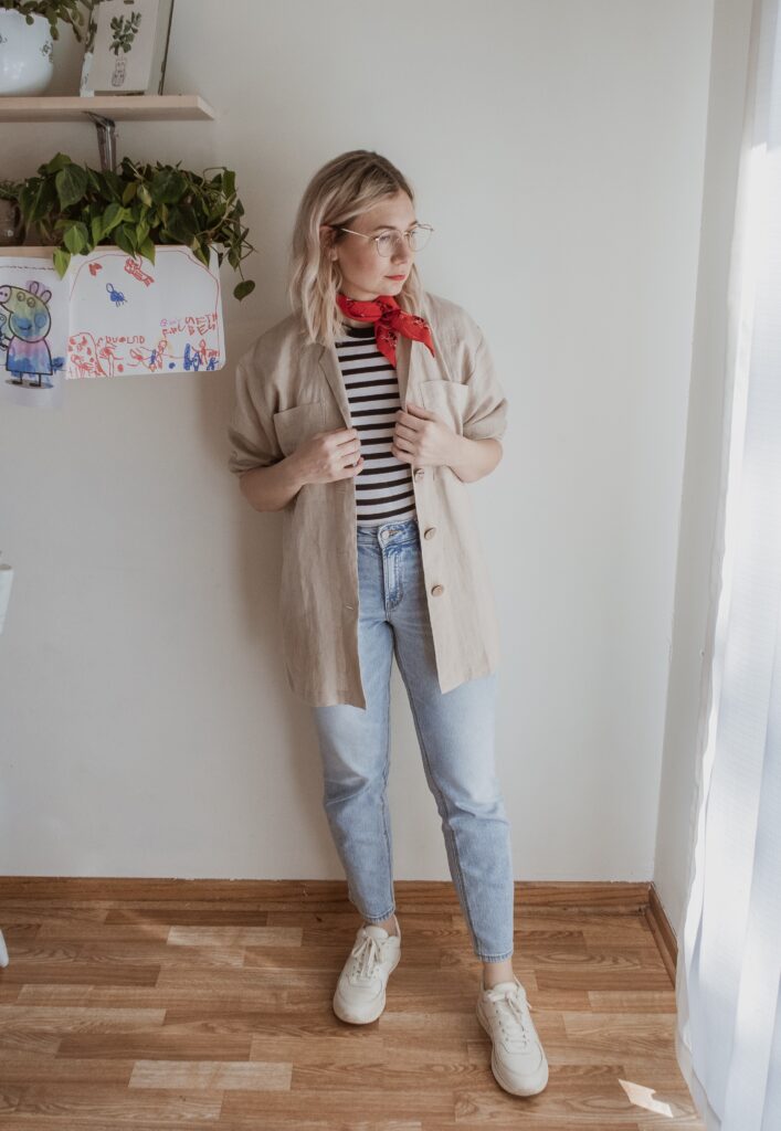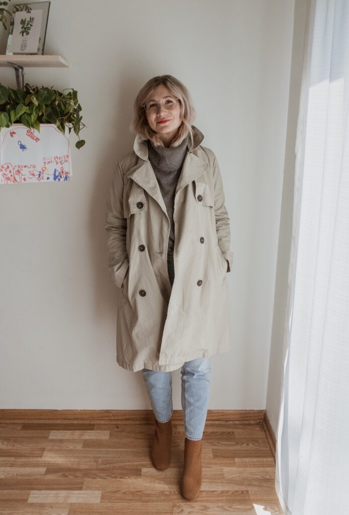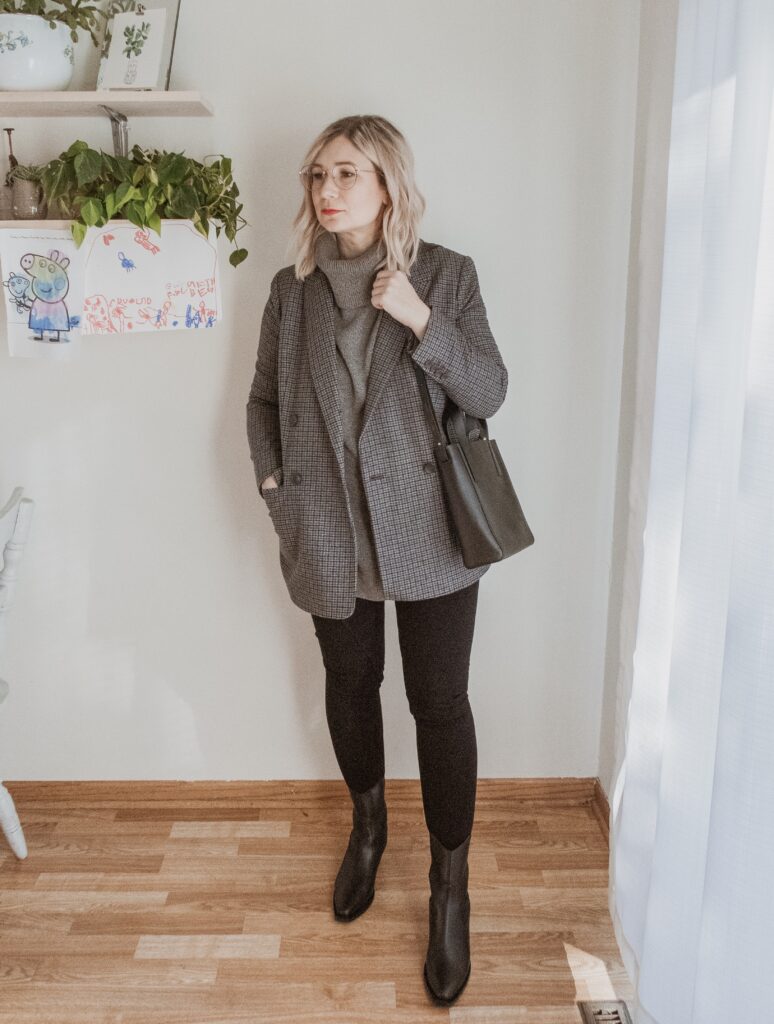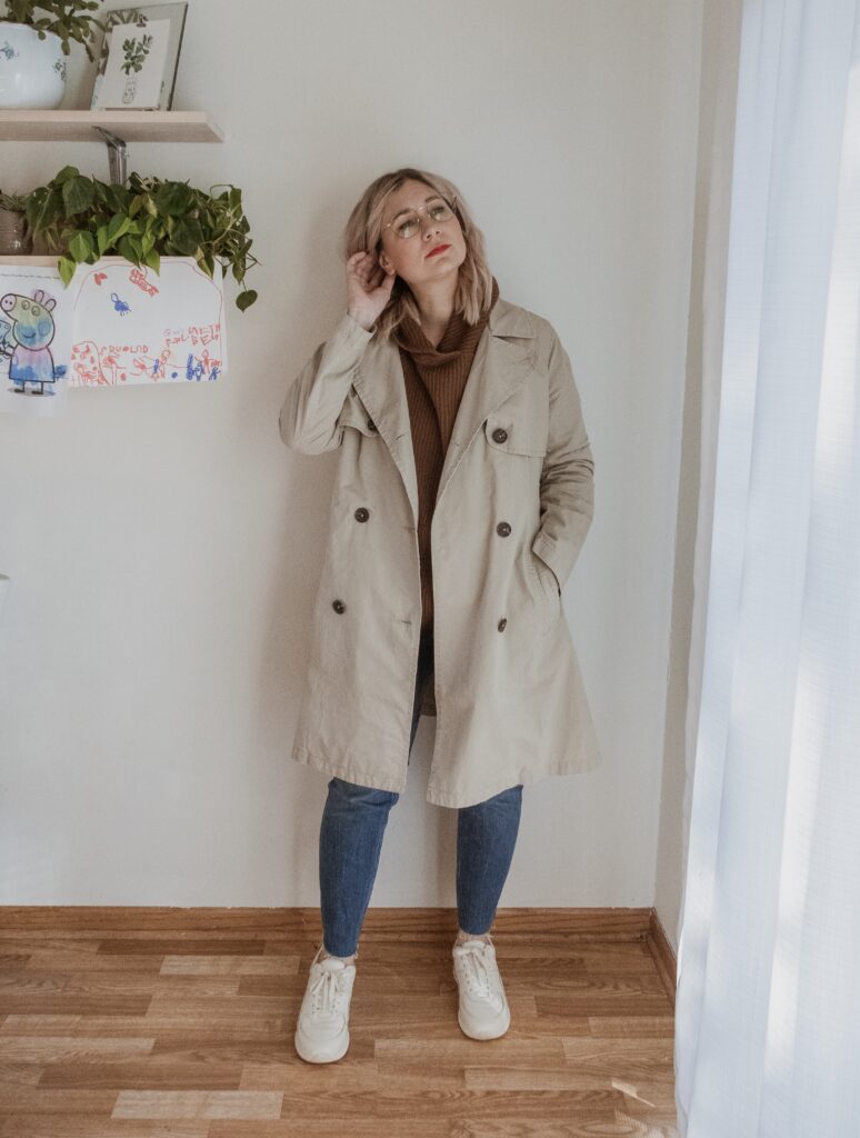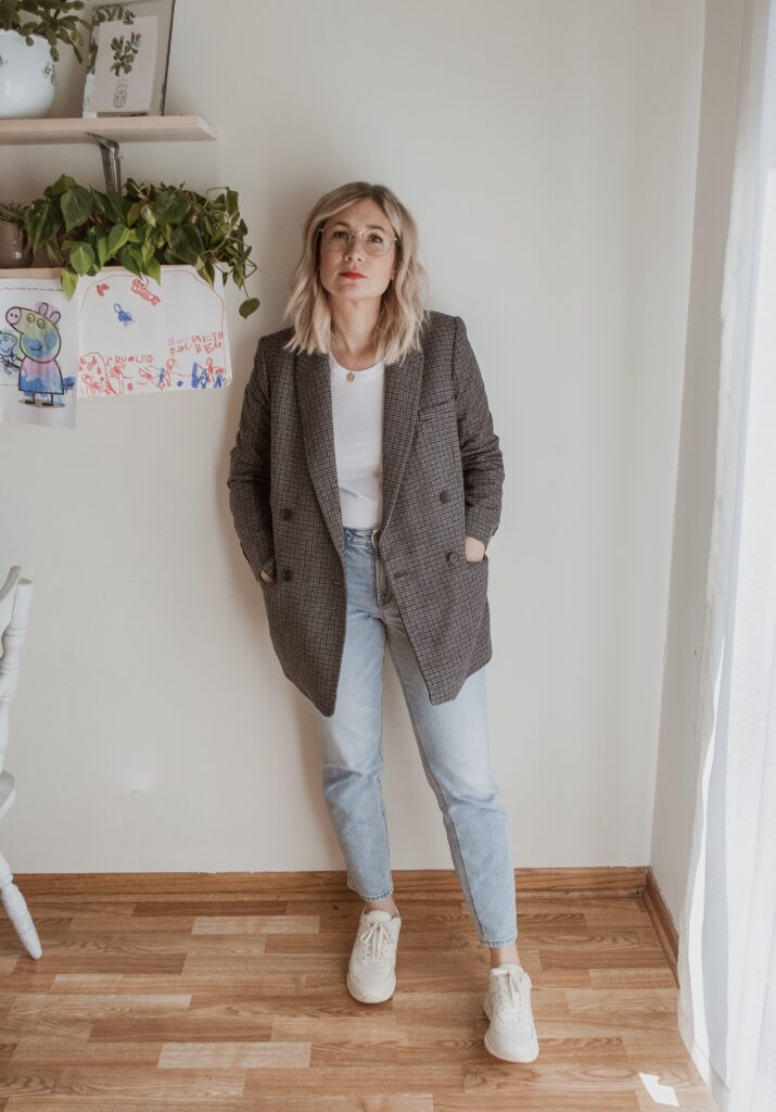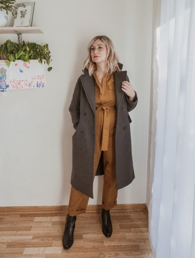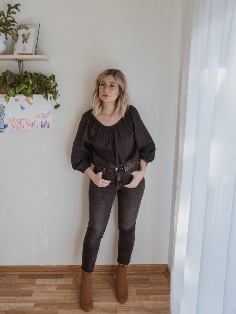 For example: denim. I am nowhere near my typical denim size and I only had one pair in my wardrobe that sort of fit. But I also recognized that a few pairs of denim would make a big difference in my overall confidence so I bought a few pairs in a bigger size.