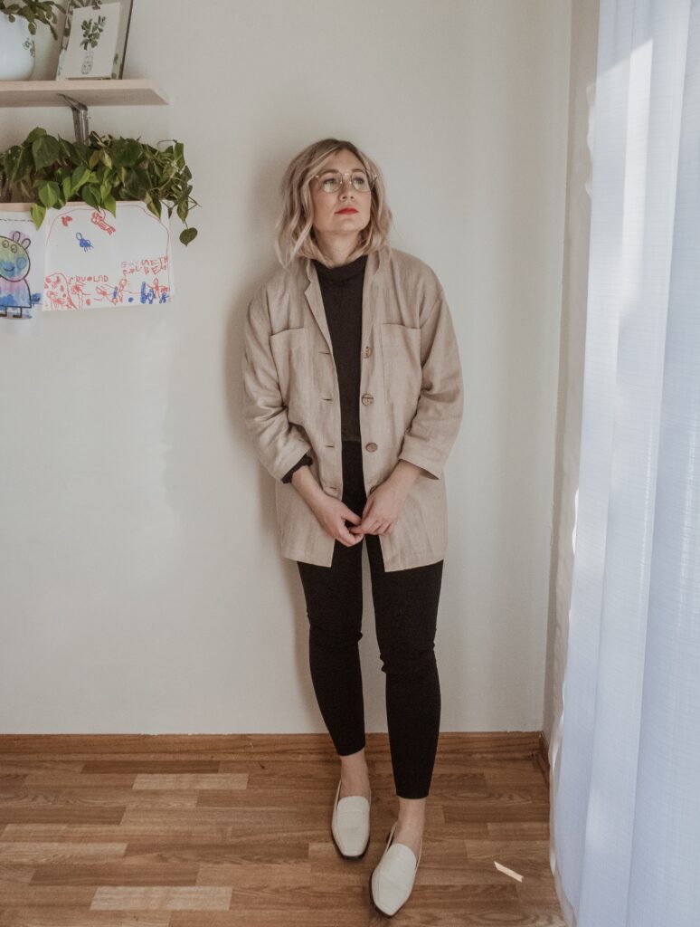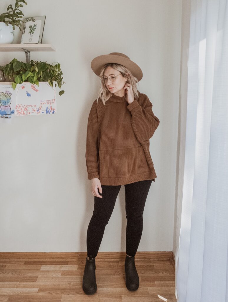 It’s not that hard to put a tunic or sweatshirt over a pair of leggings. But also because I want to encourage you to move beyond leggings/slouchy tops (unless that’s your normal style, in which case go for it!). I would encourage you to try to get back into your normal style as soon as you are able…