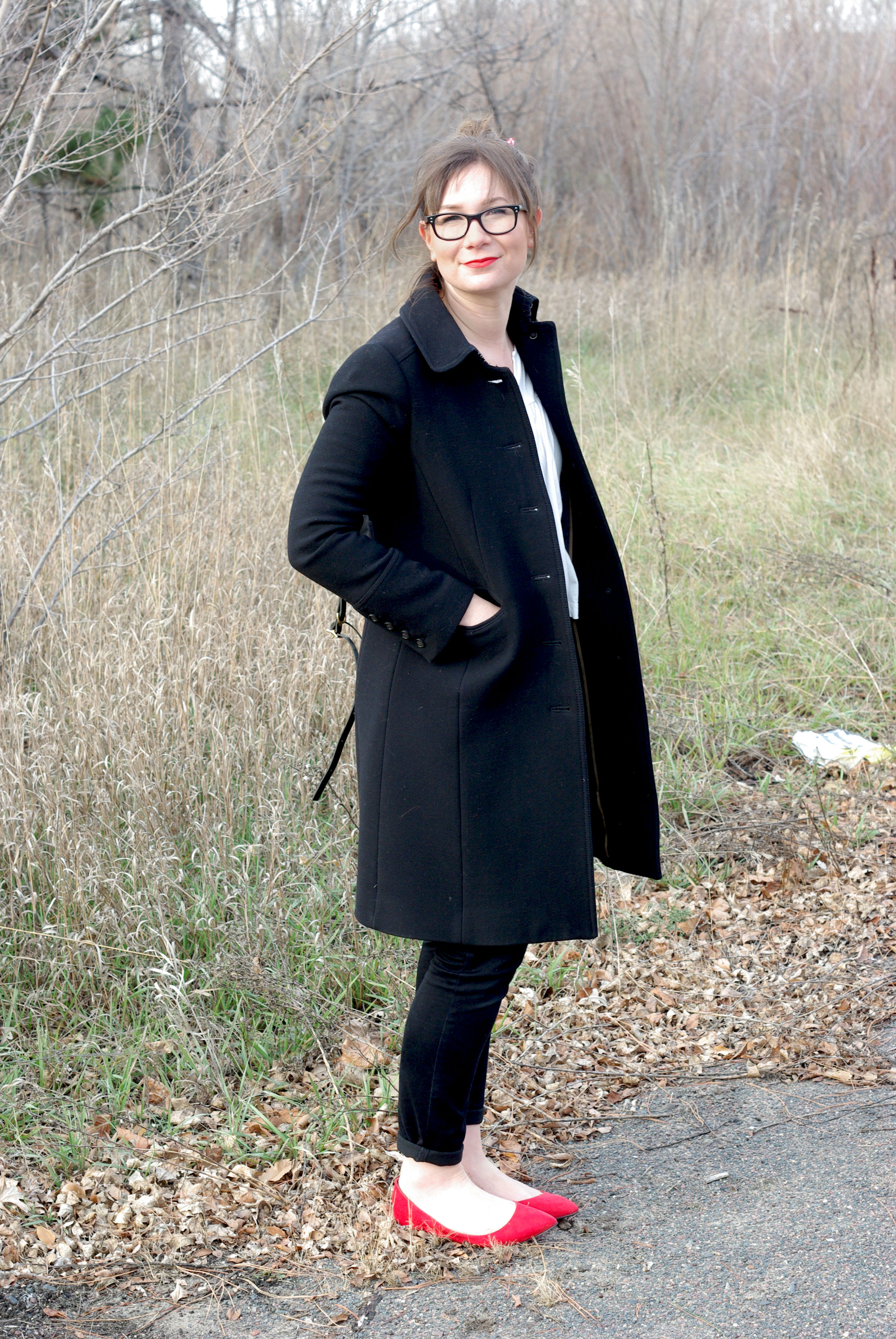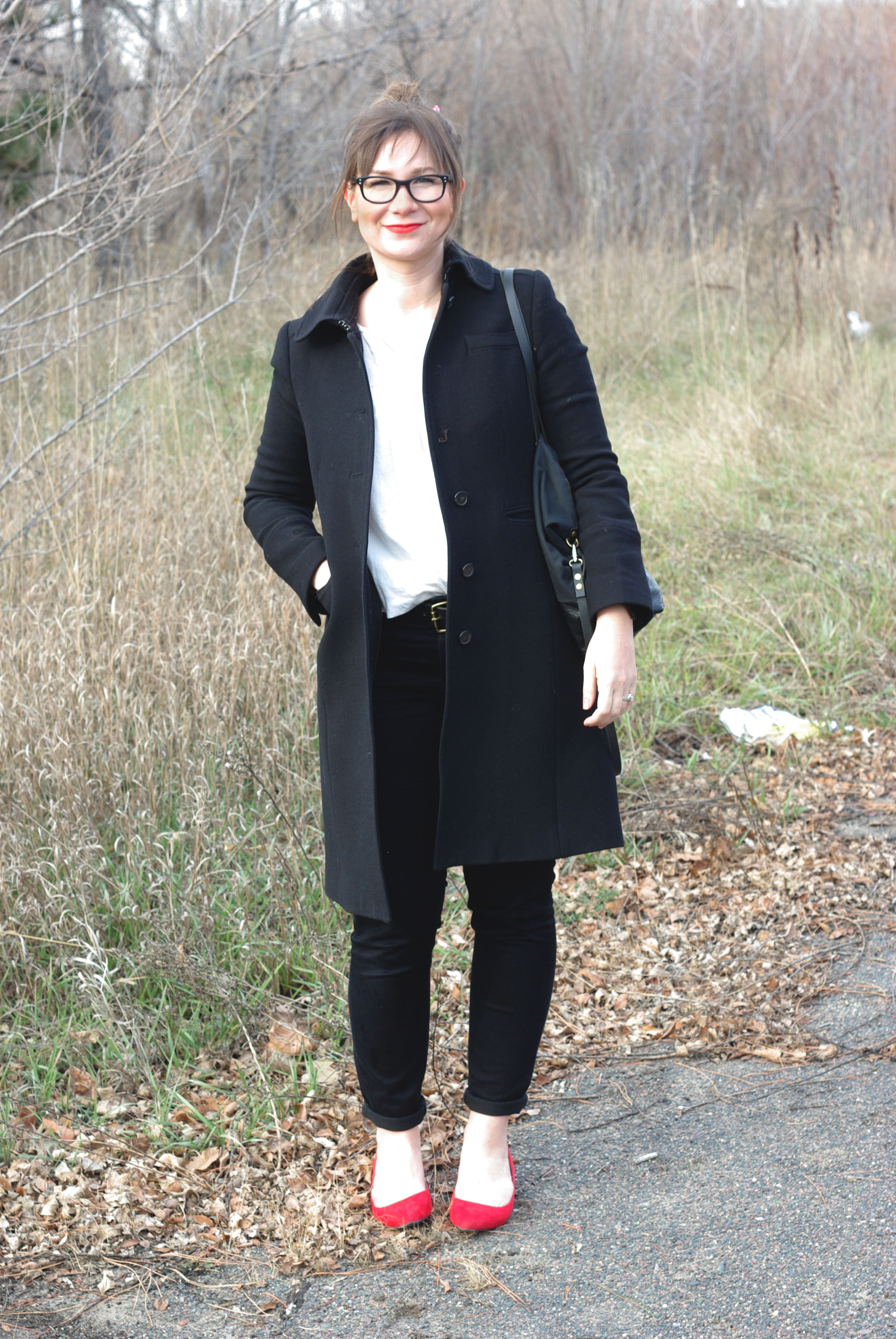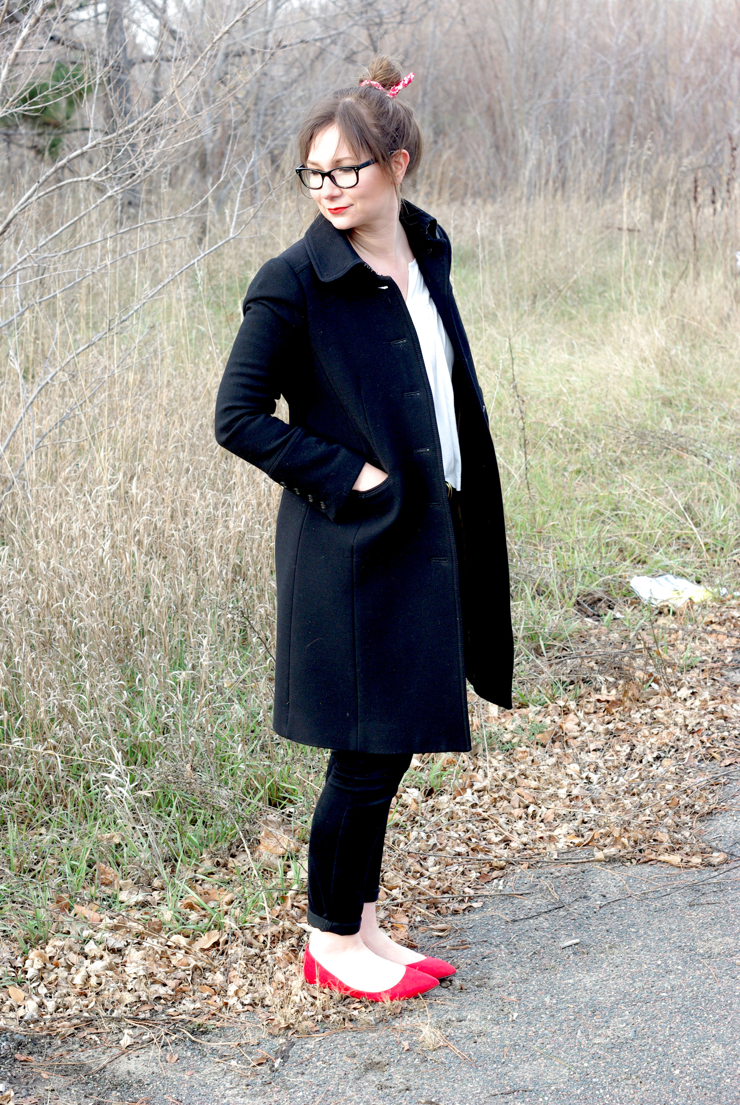 Cute look! I love your coat and the red flats are so much fun!