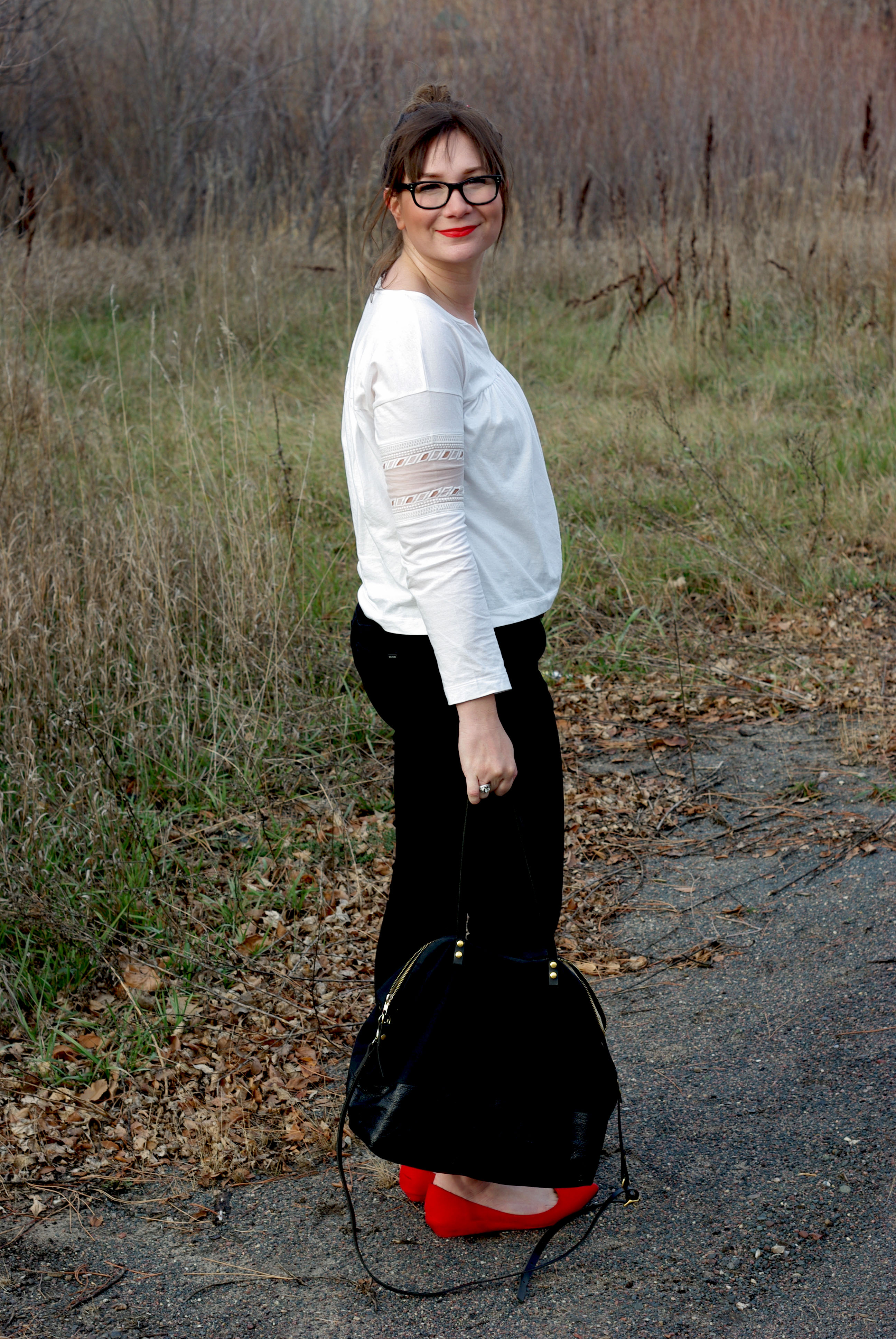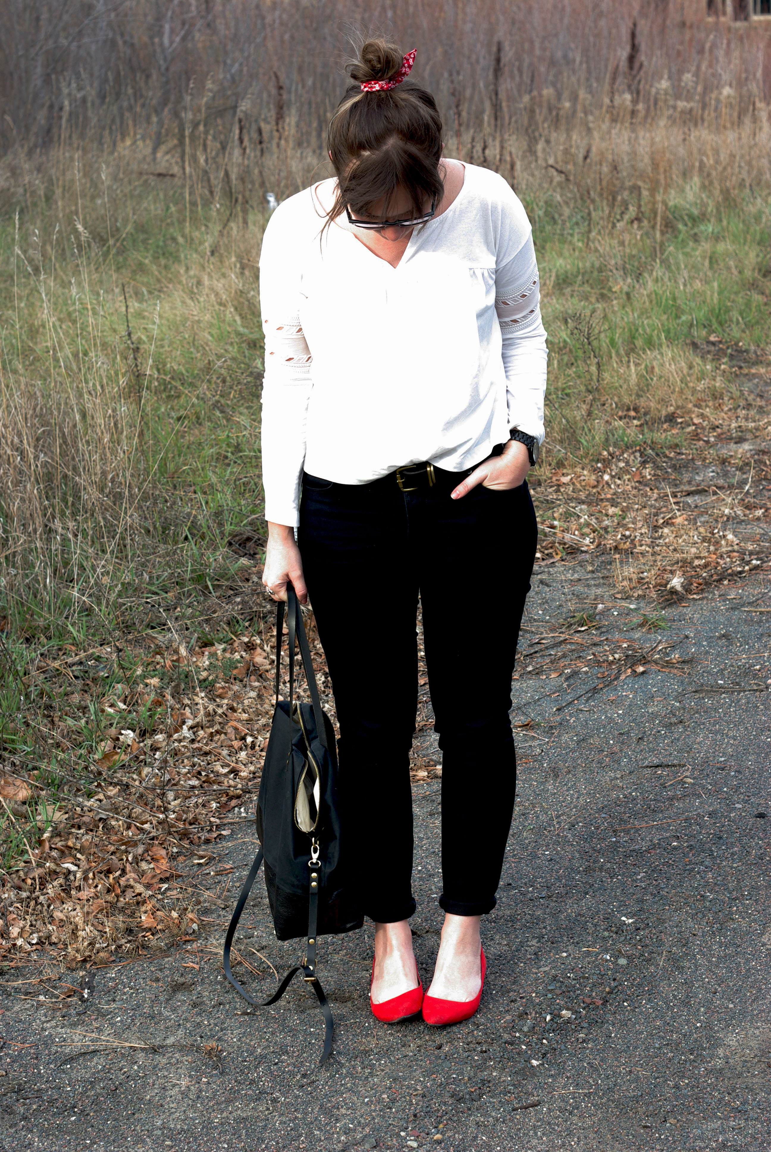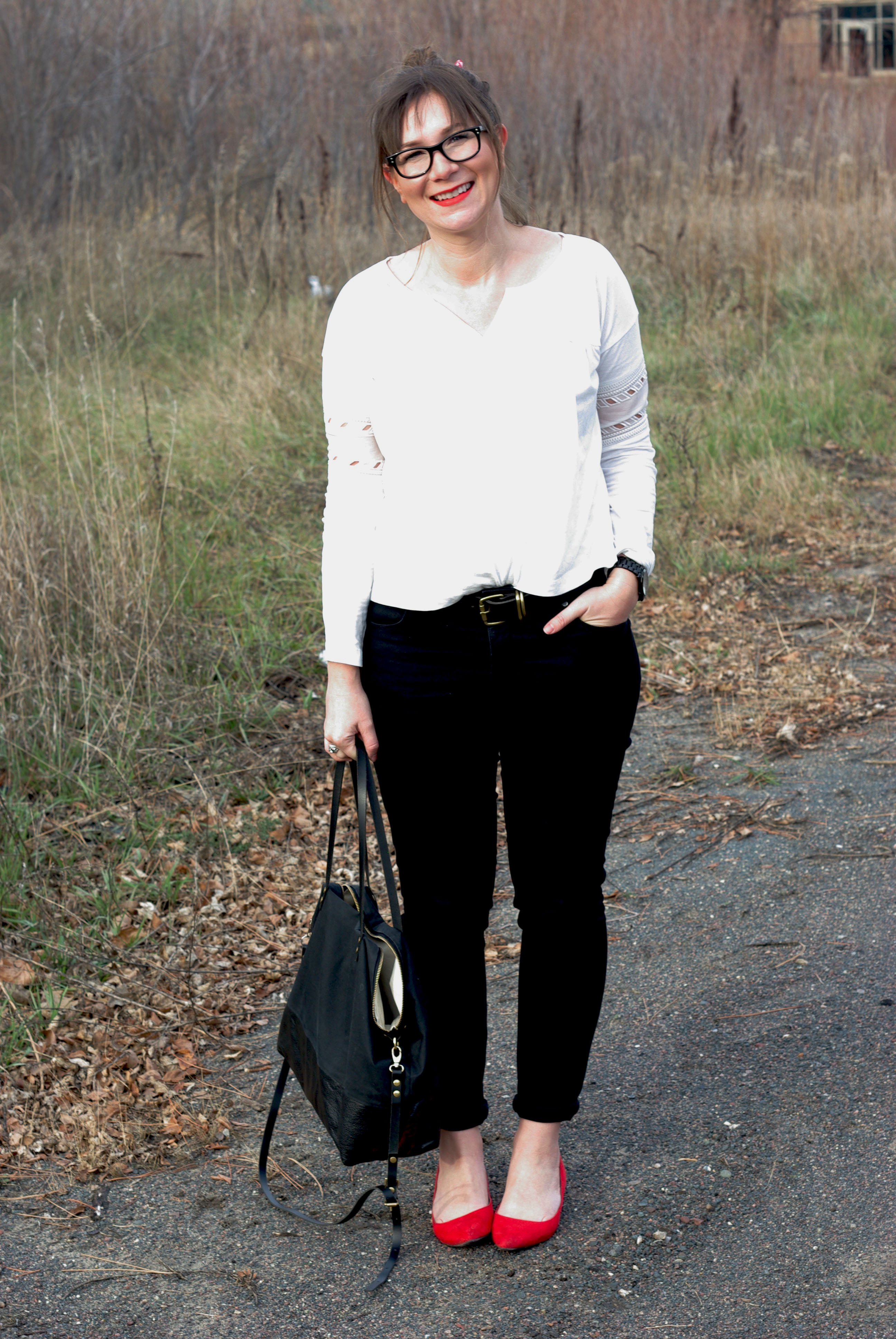 Loving this look and the pops of red!