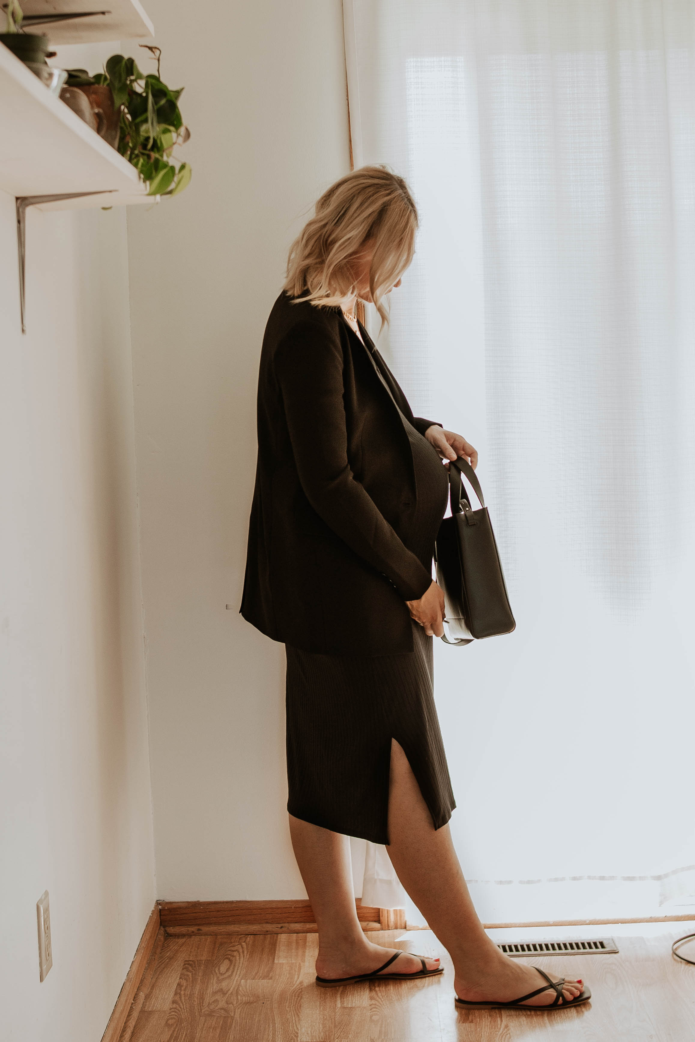 If you notice with these outfits, I didn’t buy a bunch of maternity specific clothing. I tried to stick with my regular clothing as much as possible BUT I did incorporate maternity bottoms into my wardrobe.